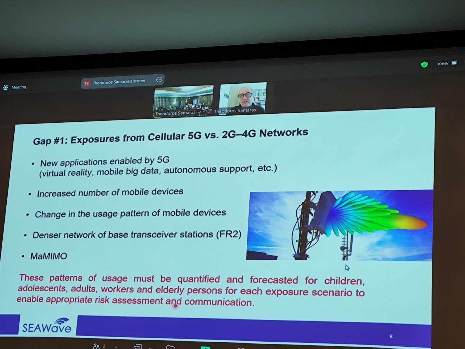In addition, the SEAWave Project group showcased the measurement and monitoring equipment used for estimating exposure to electromagnetic fields, giving attendees a hands-on look at the tools behind the research. Prof. Theodoros Samaras, Director of the EMMETRON-AUTH team and SEAWave Coordinator, joined the event remotely. He presented the findings on the biological effects of 5G millimeter-wave radiation, discussing experimental results from cellular, animal, and human studies conducted within the project.